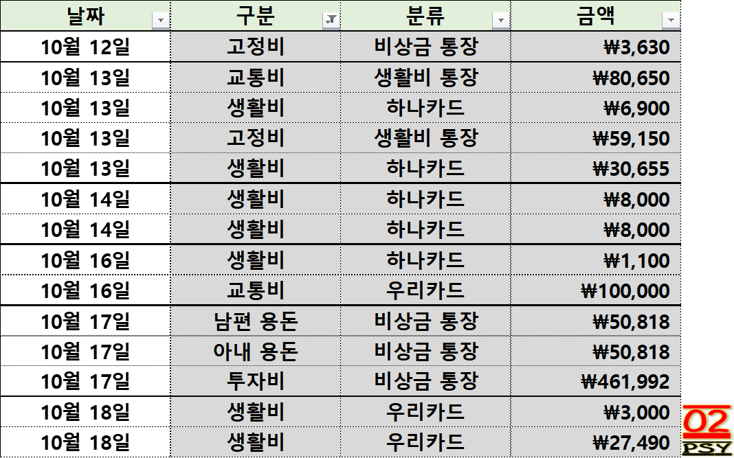 ▶ 10월 둘째 주 지출 현황
